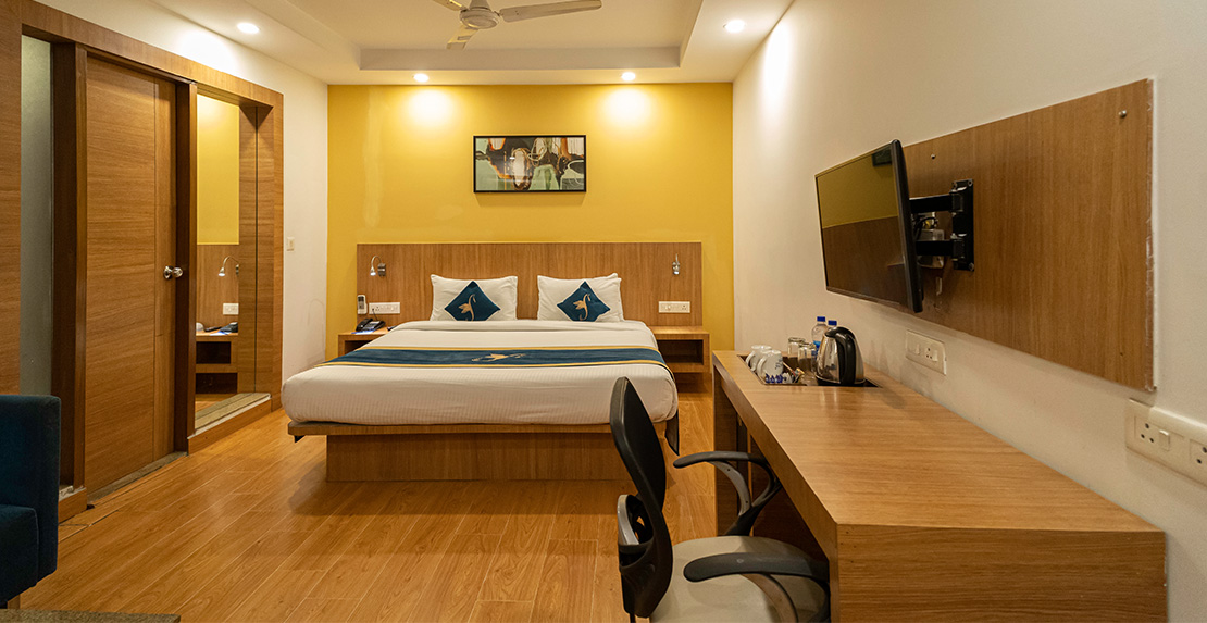 The Executive Room is a spacious and luxurious room, is designed to provide comfort and convenience for guests, A spacious bedroom with a king-size, Modern and stylish furnishings with a warm, inviting feel, The Executive Room is designed to provide a comfortable and productive stay, with a focus on both relaxation and functionality for the discerning guest.